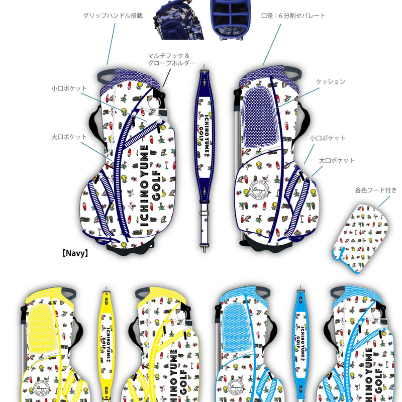 ichinoyume スタンドバッグ セルフバック セット ハワイ ICHINOYUME GOLF スタンドキャディバッグ(フード付) 3色 | ICHI NO