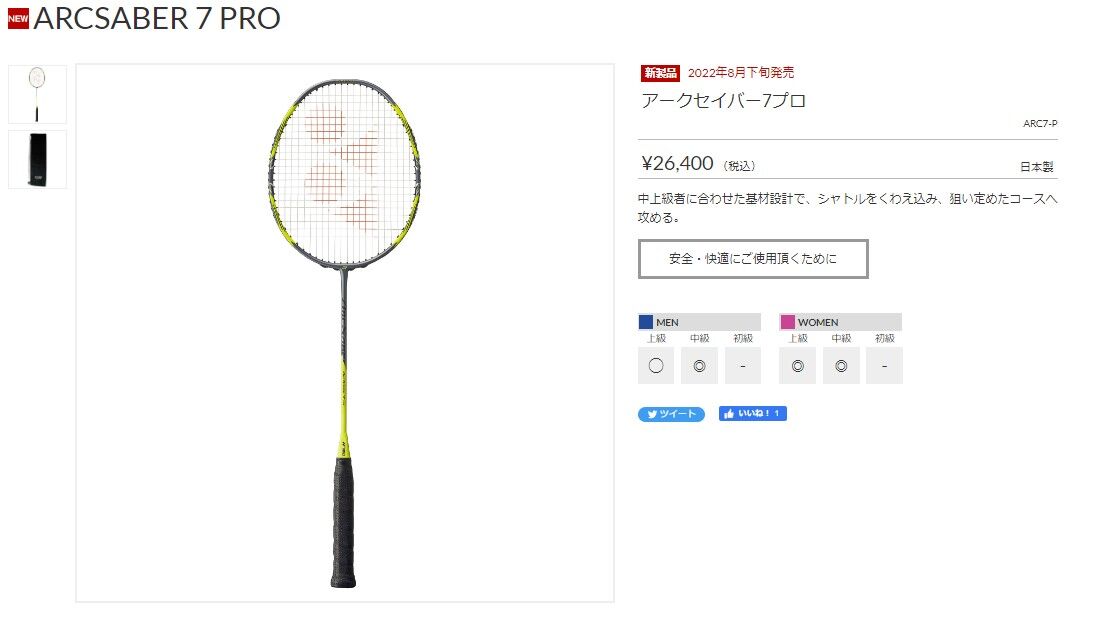 | メーカー | ヨネックス アークセイバー7プロ 2本セット |