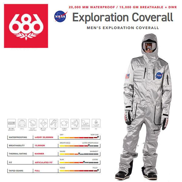 - ウィンタースポーツ > スノーボード > 686 NASA カバーオール シルバー スノーウェア シックスエイトシックス 686 Exploration Coverall メンズ NASA コラボ