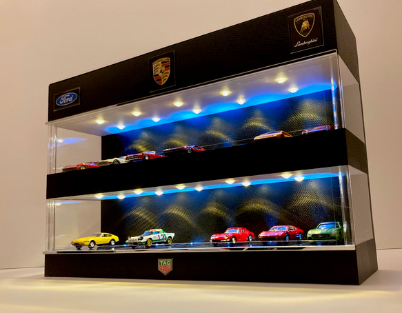 | 商品の特徴 | 1/64展示28台可能・エンボスBK・4層式ディスプレーBOX / ネオジオラマ。1/64展示28台可能・エンボスBK・4層式ディスプレーBOX / ネオジオラマ。1/64展示28台可能・エンボスBK・4層式ディスプレーBOX / ネオジオラマ。ミニカーやミニチュア、アクセサリー、フィギア、プラモデル、小物等などのディスプレーBOXです。1/64展示28台可能・エンボスBK・4層式ディスプレーBOX / ネオジオラマ。ワンオフ制作のオリジナルになります*ロゴはイメージです(希望のロゴを無償で制作承ります)**一般的な個人制作物とは違い、手間とコストを掛けています。B/Oトミカ モータートミカ 12台セット。 現物をご覧いただければ、きっと納得してもらえると自負しています*他にも色々なタイプを出品中 #ディスプレーBOX*過去の作品はminne(ミンネ)からAAA model (出品者)検索検索用オートアート・ミニチャンプス・京商・エブロ・アイドロン・航空機イグニッションモデル・BBR・LIBERTYWALK・フェラーリ・イクソホットウィール・Hot Wheels・スパークモデル・マッチボックス・トミカタミヤ・レノブ・マイスト・マクラーレン・ランボルギーニ・フィギアディスプレイケース・ウィリアムズ・ポルシェ・ロータス・プラモデルショーケース模型詳細A.エンボス(凹凸)加工のブラック基調仕上げ 2F~4F床は透明 1F床に5灯、天井に5灯のLED照明内蔵 1/64スケールが28台展示可能B.前面にホコリ対策の透明パネル付、左右スライド式C.一般的なジオラマタイプの模型では天井のみの照明ですが、床下にも照明を設置した贅沢な仕様ですD.寸法261X90 H300mm 内寸253X77 H50mm (1〜3F共通)照明詳細1.単三電池2本仕様のLED照明が内蔵されています(電池2本、別途ご用意願います)2.ルーフ面が蓋状になっており、その蓋を開けるとスイッチ付きの電池ケースがあります。SKYLINE HT2000 GT-R バリバリカスタム。配線も綺麗に収めていますルーフ面はフラットなのでホコリ等の掃除が簡単ですその他詳細、注意点1.写真のミニカー1/64は付属しません2.制作するににあたり、厳選した素材で仕上げています。1/43 スカイライン改 ジャパン フォーカスレーシング アルミ製 深リム。3.電池式の為、コンセントのない場所に設置可能です。1/43 シトロエン DS3 ディーラー品 ミニカー 3台セット。 他のミニチュアやアクセサリー展示など、お部屋のインテリア、SNSの写真にも5.個人制作の為、小キズ等がある場合もありますが、考慮の上ご了承下さい | ||