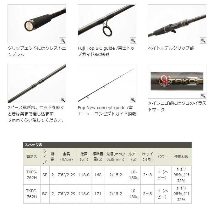 | 商品の特徴 | Abu Garcia(アブガルシア) タコスフィールド TKFC-762H (ベイト。Abu Garcia(アブガルシア) タコスフィールド TKFC-762H (ベイト。Abu Garcia(アブガルシア) アブ ガルシア タコスフィールド TKFC。ご覧頂きありがとうございます。こちら アブガルシア タコスフィールド ベイトモデル TKFC-762H となります。使用に伴う傷等はありますが、美品の部類だと思います。元箱や収納袋の付属品はありません。新品で購入し使用しておりましたが、船釣りメインとなり、釣具整理のため出品いたしました。よかったらいかがでしょうか?クラーケン専用モデル。従来よりグラスの含有率を高め、強度UPとトルクパワーをさらに向上させたHDヘビーデューティーモデル。タコの先駆者、デビル渡辺氏が監修。ティップはソフトで繊細。タコを掛けてからも綺麗に曲がり、最終的にはタコを引き剥がすバットパワーを持っています。タコ用リグは、250gまで使用可能で、PEラインMAX12号まで使える高強度トルクフル設計。繊細に誘えるティップセクションを持ちながら、ベリーからバット部にかけては非常に強さを持ったエクストラヘビーアクションです。- ブランド: TAKOSSFIELD- モデル名: TKFS-762H- 全長: 2.18m- 自重: 128g- 適合ルアーウエイト: 10-250g- 素材: カーボン98%、グラス2%- ガイド: SICガイド- 継数: 2本 #ダイワ#シマノ#オクトパッシング#タコエギ#エギタコ。アブガルシア TAKOSSFIELD タコスフィールド TKFC-762H アブガルシア。スクイッドマニア ゼログラビティスパイダー。【開封済・未使用】シマノシーバスロッド ディアルーナ S96MH スピニング。ツララ Routes(ルーツ)S56UL。シーリアベイトさぐり 350。ブルースナイパー BlueSniper 81/6 Blacky。デプス サイドワインダーGP アウトクロス。ダイワ 大島1.5号63。21ゲームタイプ LJ ベイトモデルB65ー0/fs。ハートランドZ 冴掛 ミッジディレクション 682LFS―ti。天龍 ルナキア LK 582-LS アジ。ダイワ(DAIWA) 投げ竿 プライムキャスター 30-405 | ||
